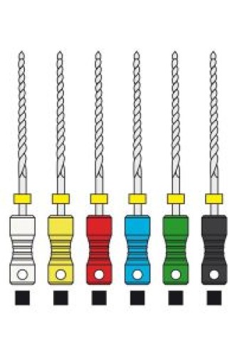 Работа К-файлом № 90-140 осуществляется как поступательными, так и вращательными движениями. Благодаря длине в 25 мм он отлично подходит стандартным зубным каналам.