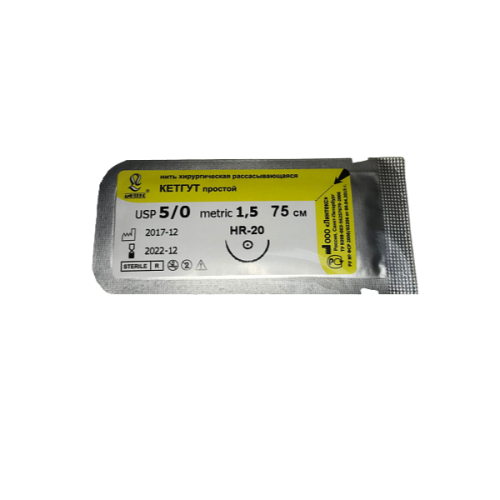 Для изготовления материала 5/0 Кетгут применяется органический материал из овечьего кишечника. Нить специально отполирована, поэтому легко проходит сквозь мягкую ткань, сочетая высокую прочность и эластичность.